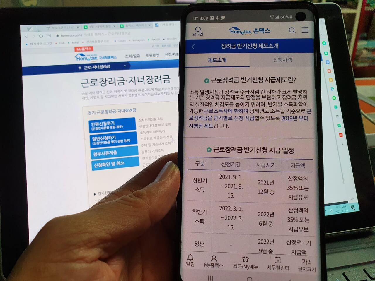 근로장려금: 3) 신청/제출 근로장려금·자녀장려금 신청 및 조회, 사업자등록 신청, 일반 세무서류 신청, 송달장소 변경, 전자고지 신청/해지 등.